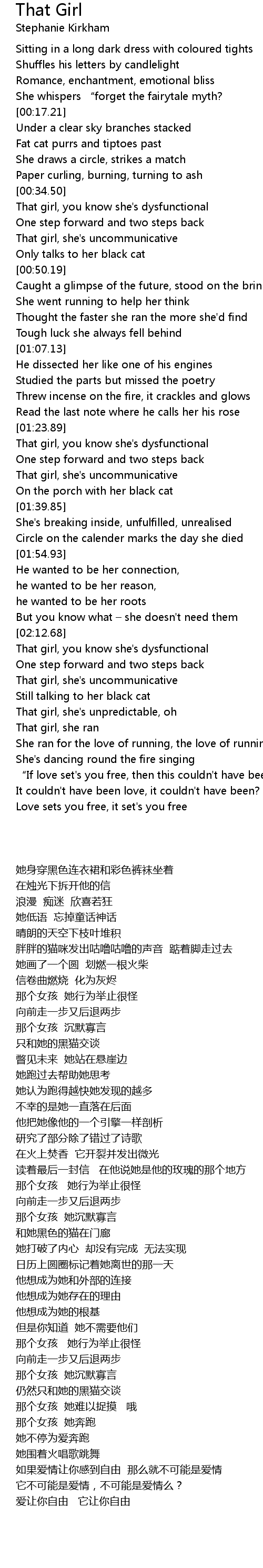 | [01:36.86] | 和她黑色的猫在门廊 |
