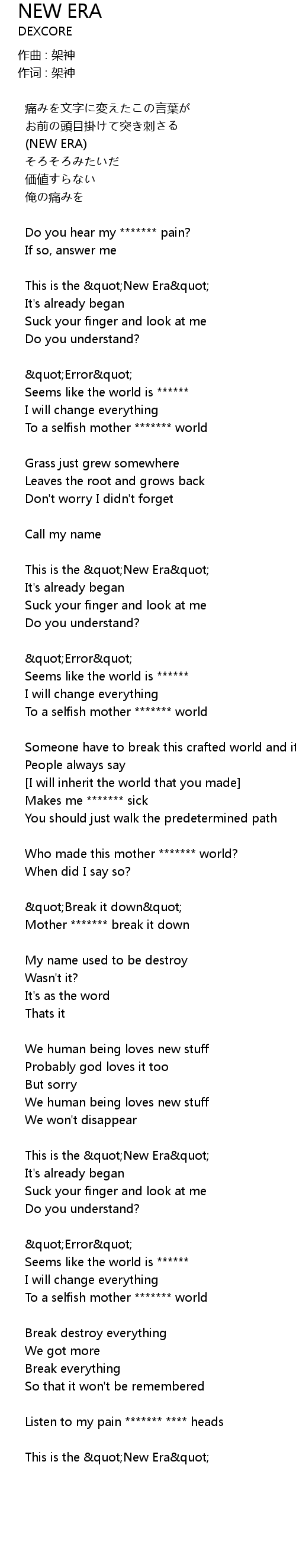 | Who made this mother ******* world? | |