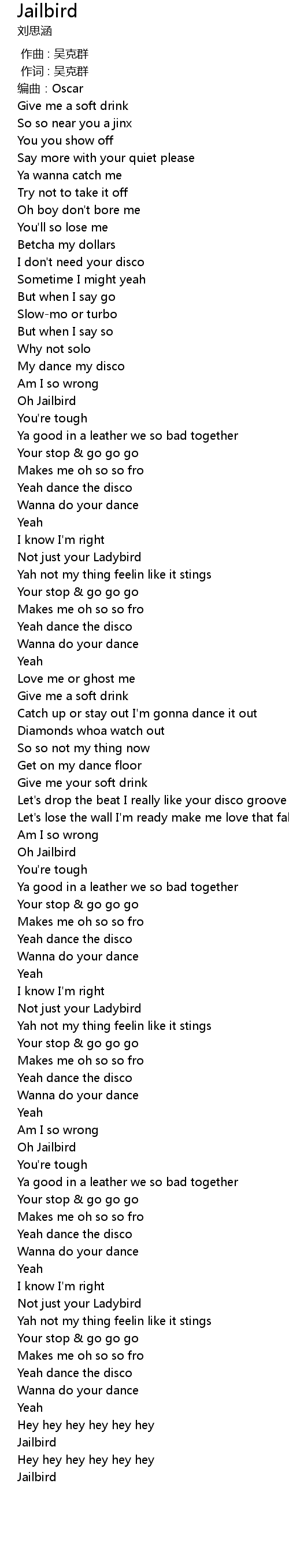 | [02:23.51] | Yah not my thing feelin like it stings |