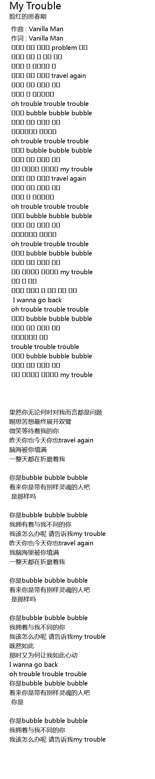 | [02:52.663] | 我该怎么办呢 请告诉我my trouble |