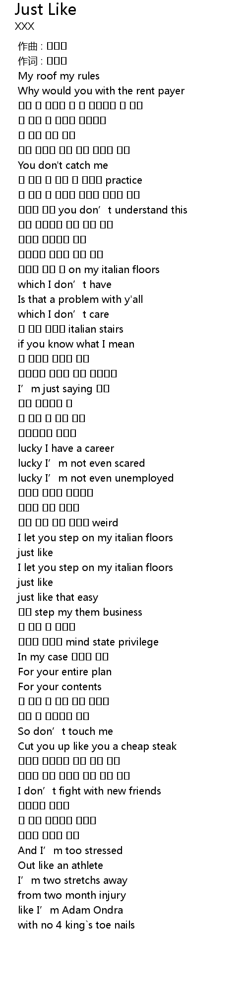 | [01:20.732] | 저기요 이제 니 on my italian floors |