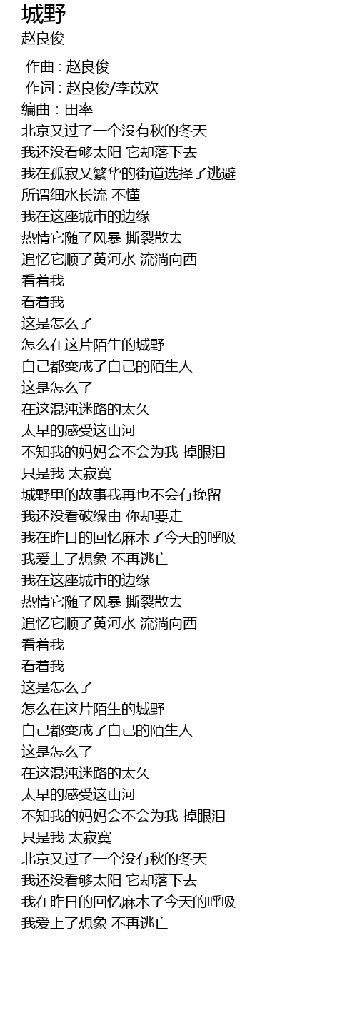 | [01:42.072] | 怎么在这片陌生的城野 |
