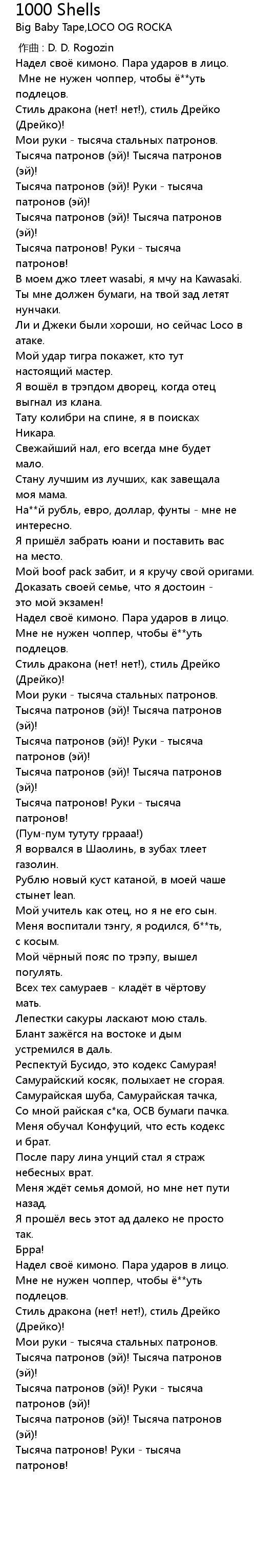Тысяча патронов (эй)! Руки - тысяча патронов (эй)! |