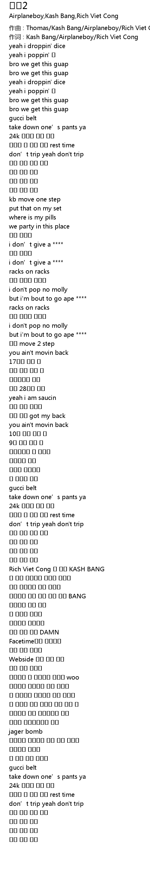| 作词 : Kash Bang/Airplaneboy/Rich Viet Cong | |