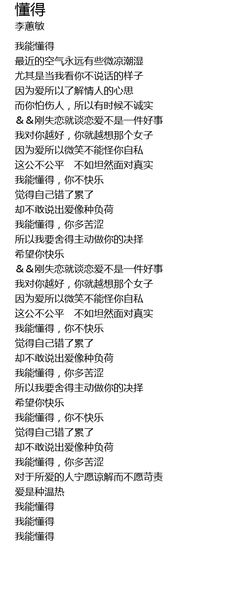 | [00:00.00] | 我能懂得 |