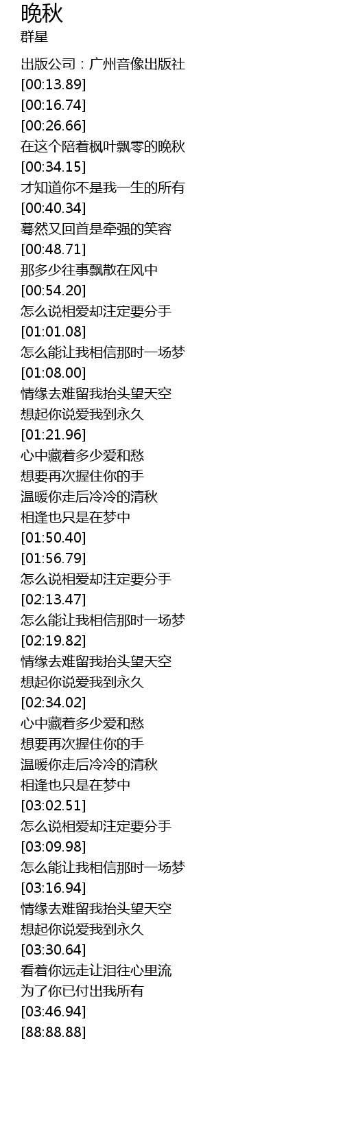 | [00:28.63] | 在这个陪着枫叶飘零的晚秋 |