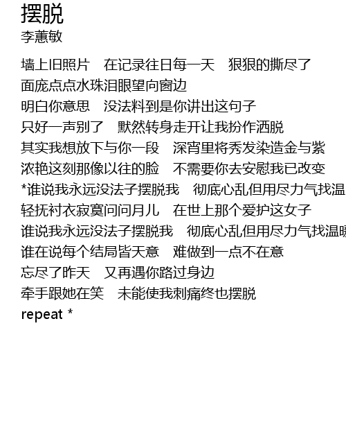| *谁说我永远没法子摆脱我 彻底心乱但用尽力气找温暖 | |