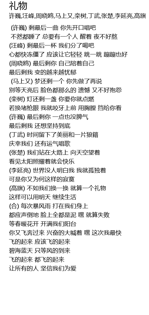 | [02:30.649] | (高旗) 不如我们换一换 就算一个礼物 |