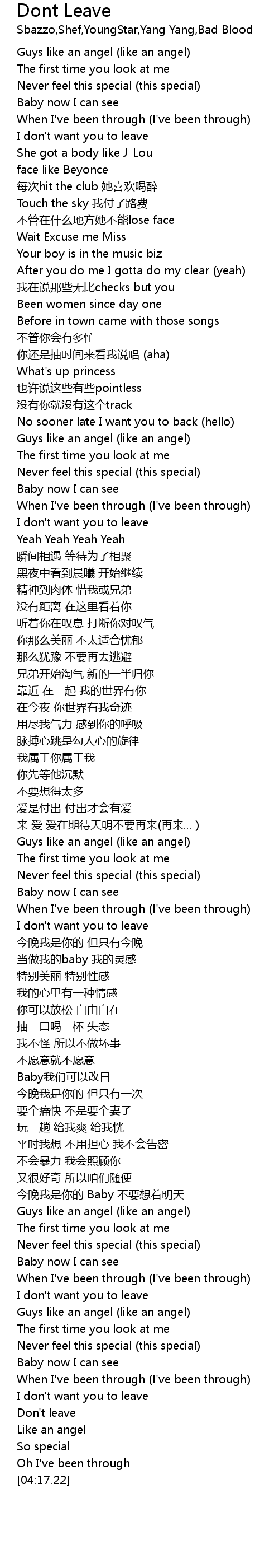 | [03:22.42] | Guys like an angel like an angel |