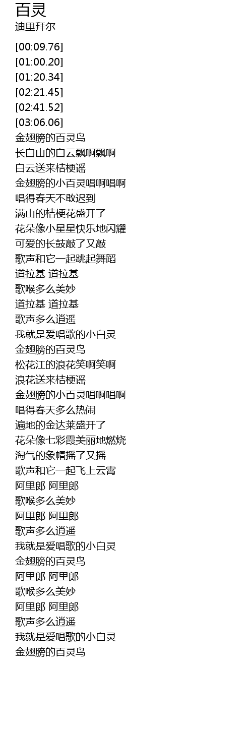 | 歌曲 | 百灵 |