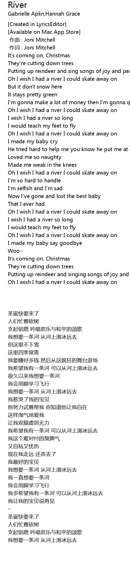 | [02:08.562] | 我多希望我有一条河 可以从河上滑冰远去 |