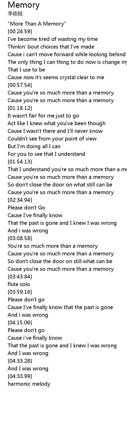 | [02:24.28] | Cause you're so much more than a memory |