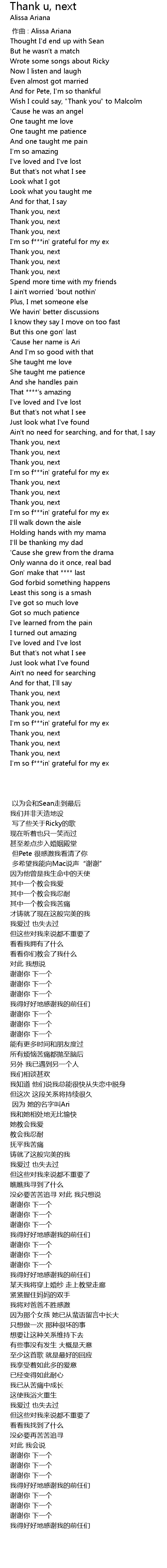 | 歌曲 | Thank u, next |