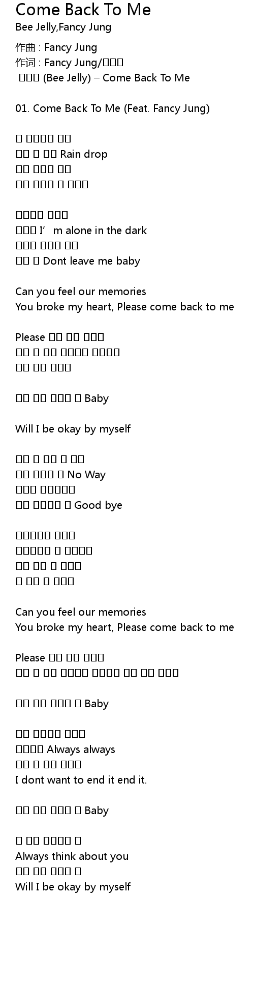 | [가사] 비젤리 (Bee Jelly) – Come Back To Me | |