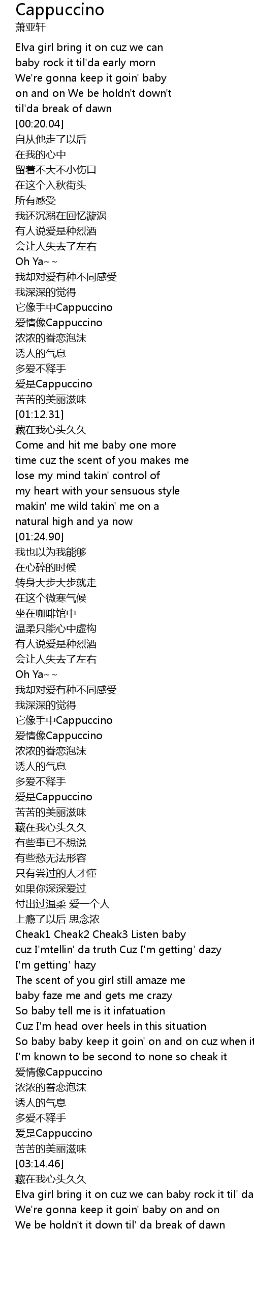 | [02:11.42] | ai shi Cappuccino |