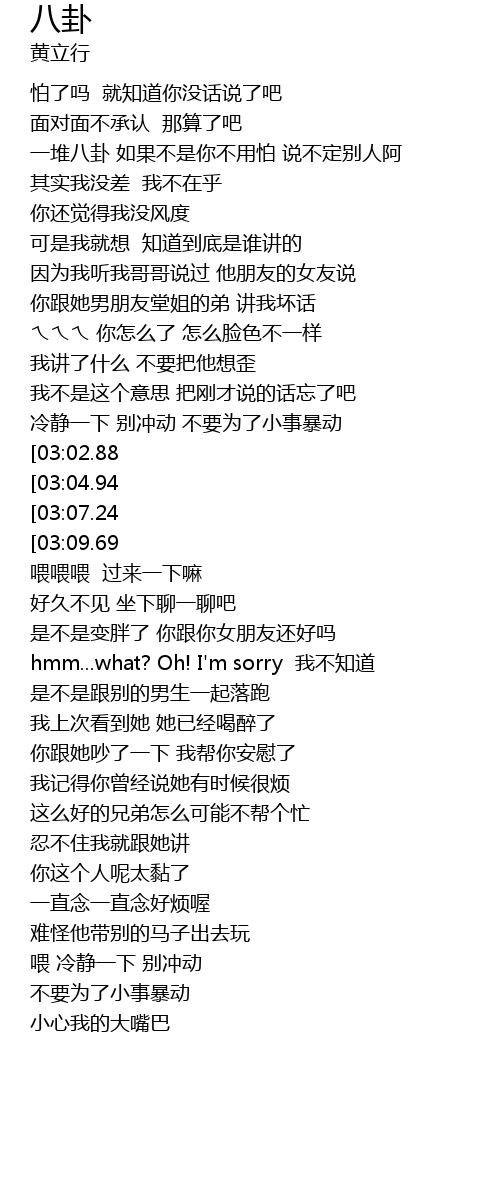 | [00:34.26] | 一堆八卦 如果不是你不用怕 说不定别人阿 |