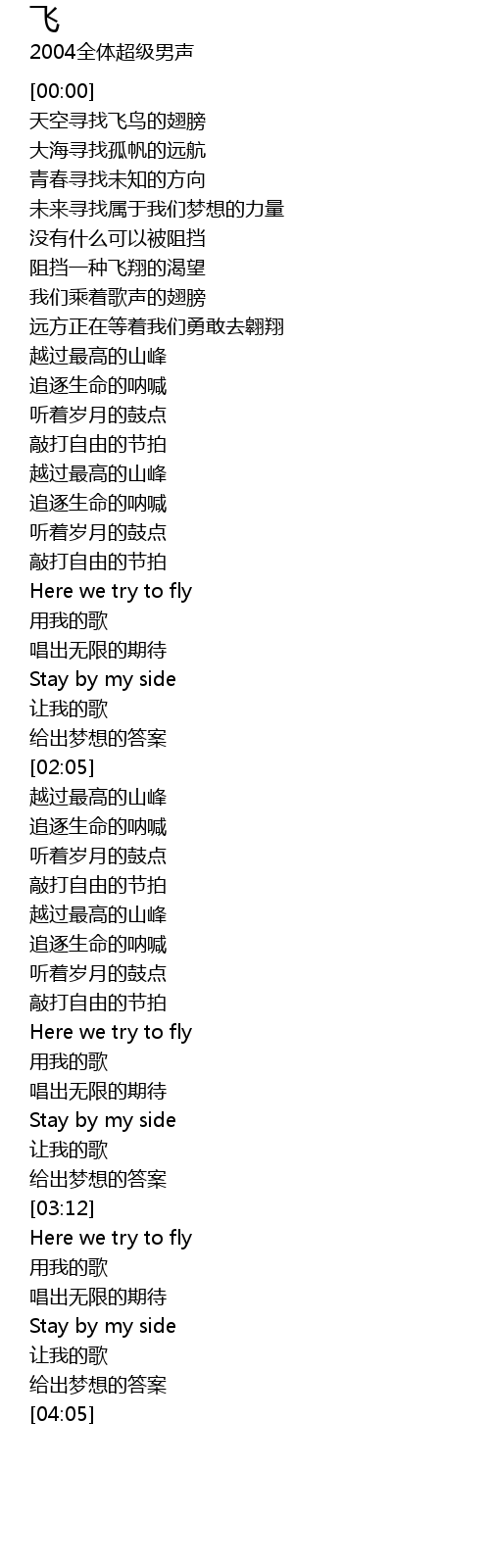 | [01:00] | 远方正在等着我们勇敢去翱翔 |