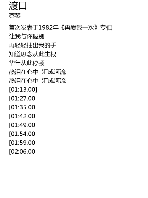 | [02:51.00][01:49.00] | 渡口旁找不到 |