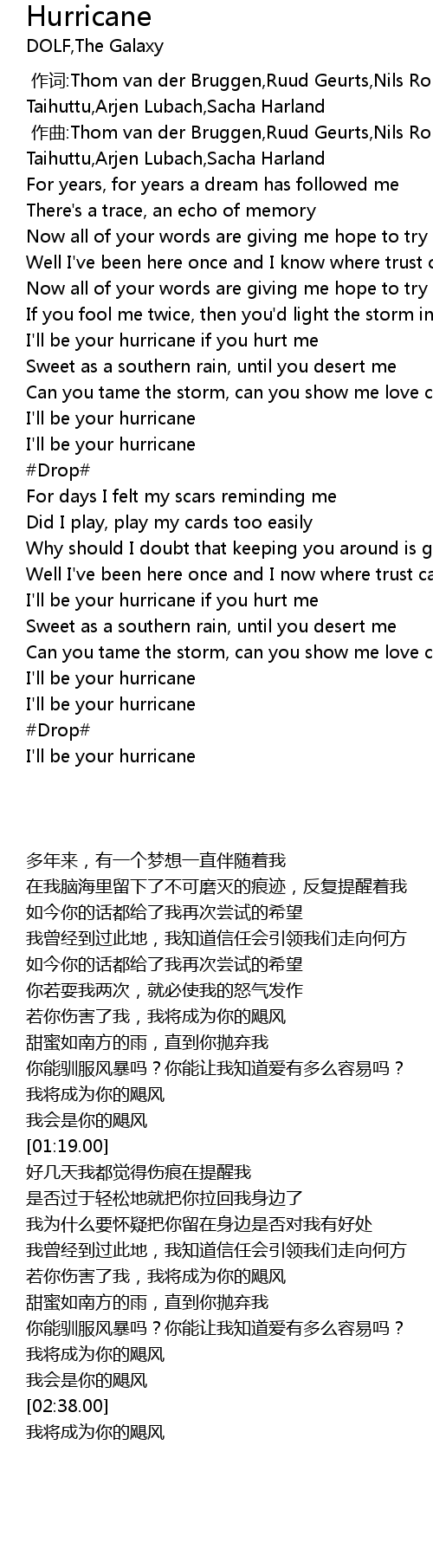 | [02:11.00] | I'll be your hurricane if you hurt me |