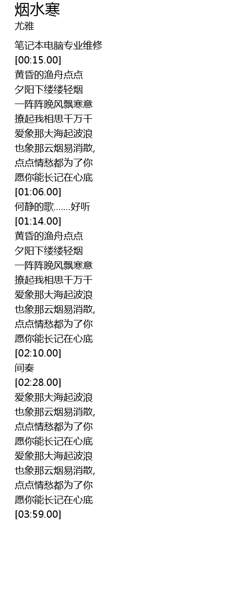 | [03:00.00] | 点点情愁都为了你 |
