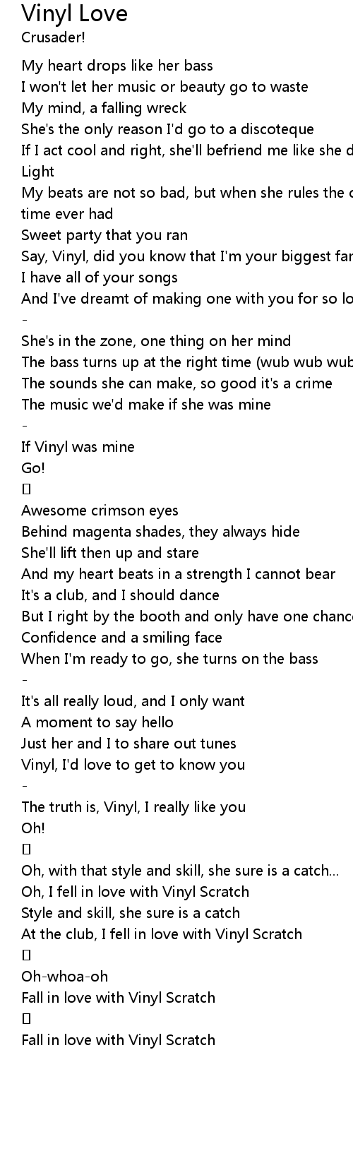 | [03:03.047] | Fall in love with Vinyl Scratch |