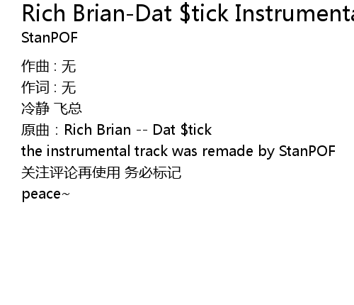 | 歌曲 | Rich Brian-Dat $tick Instrumental.(StanPOF remix) |