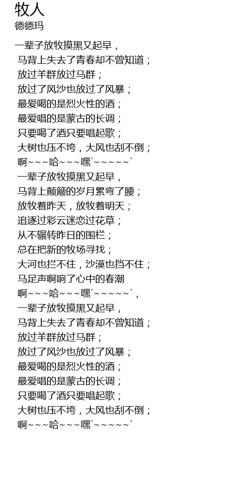 | [03:52.810] | 最爱唱的是蒙古的长调; |
