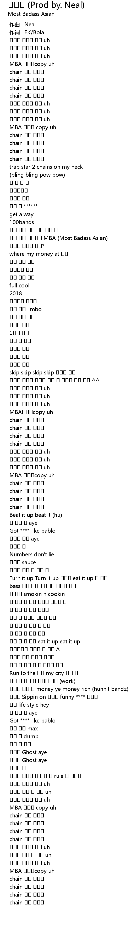 | [00:53.778] | 말한 대로 여전하게 MBA (Most Badass Asian) |