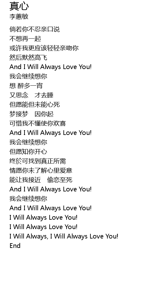 | [04:13.73] | I Will Always, I Will Always Love You! |
