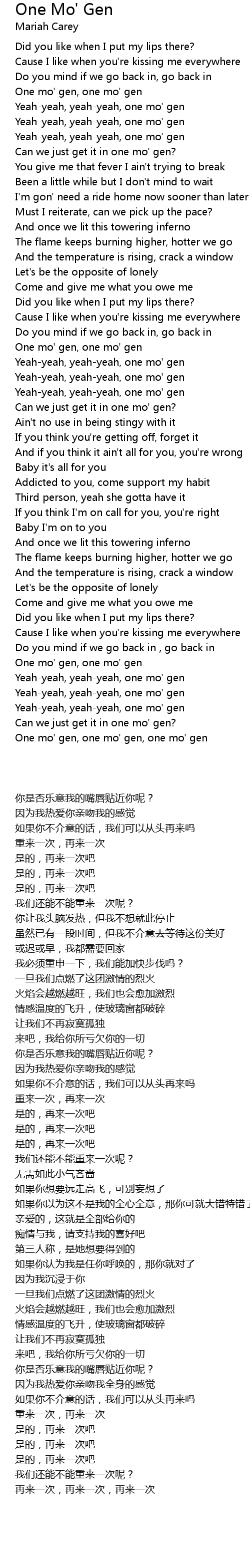 One mo' gen, one mo' gen |