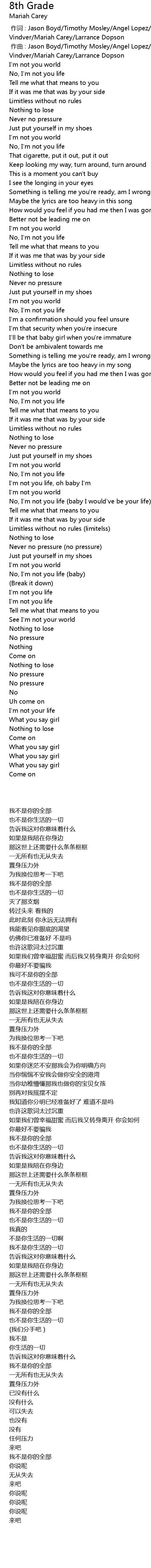 | 歌曲 | 8th Grade |