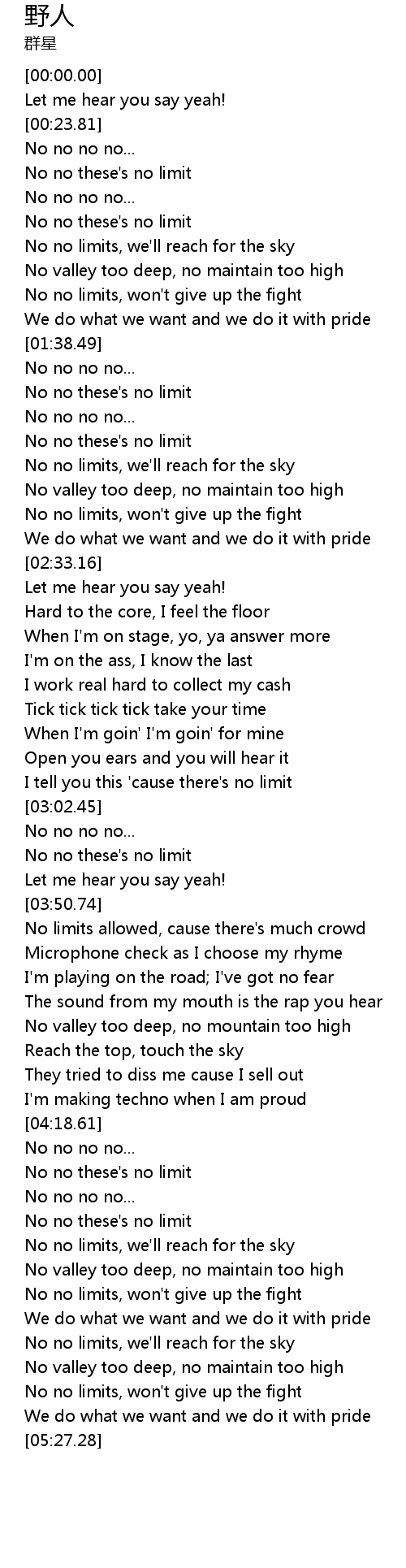| [03:00.29] | I tell you this 'cause there's no limit |