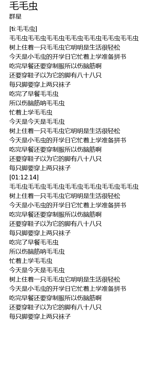 | [00:05.979] | 毛毛虫毛毛虫毛毛虫毛毛虫毛毛虫毛毛虫毛毛虫 |