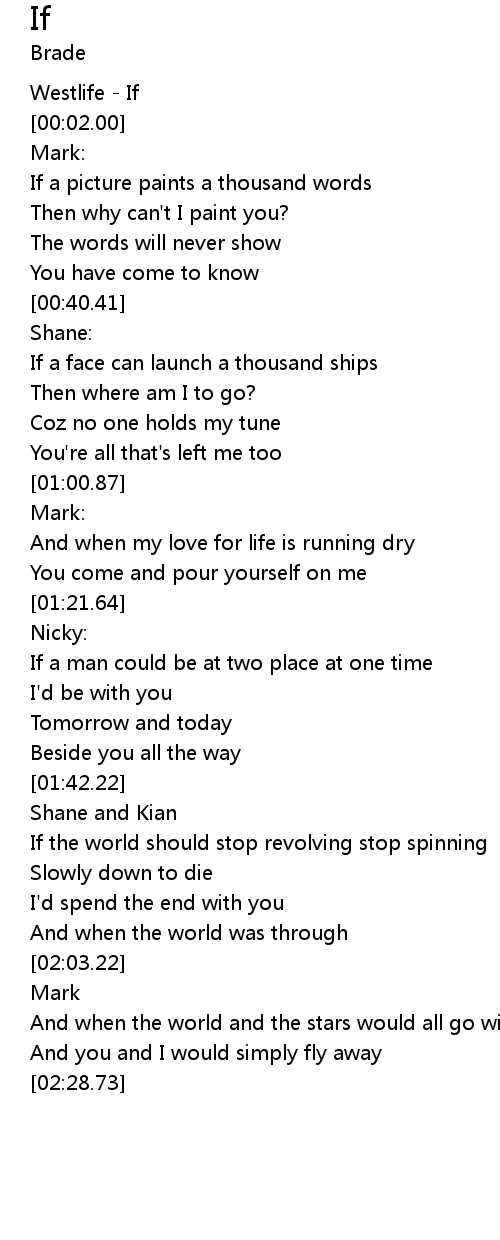 | [01:43.21] | If the world should stop revolving stop spinning |