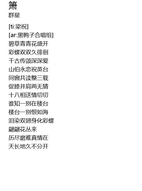 | [00:49.384] | 山伯永恋祝英台 |