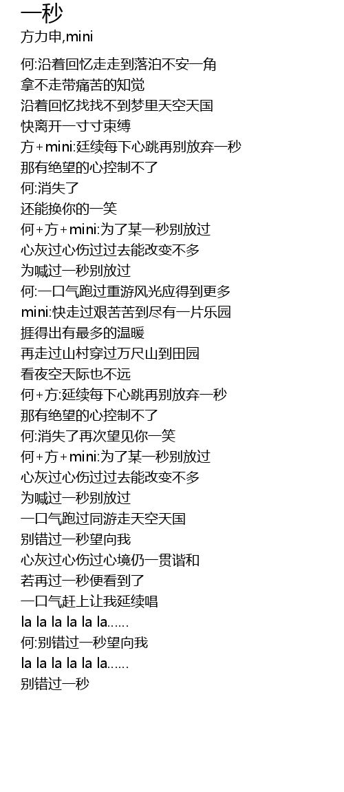 | [02:39.38] | 何+方+mini:为了某一秒别放过 |