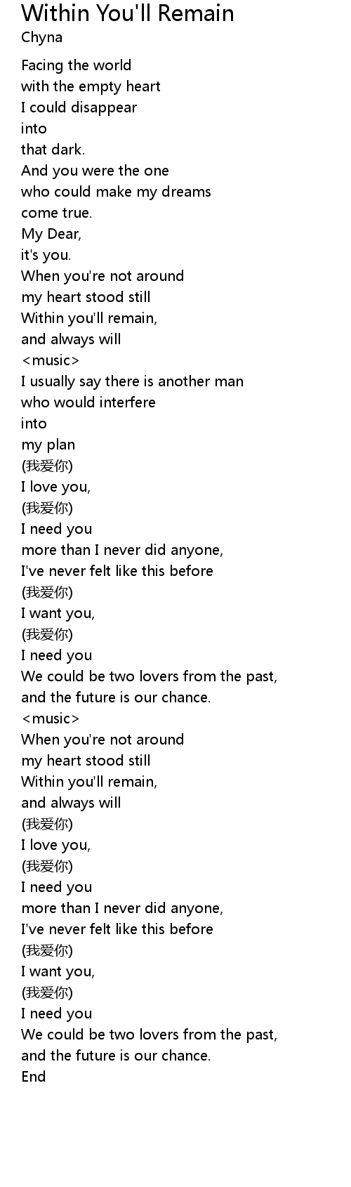 | [01:12.239] | Within you' ll remain, |