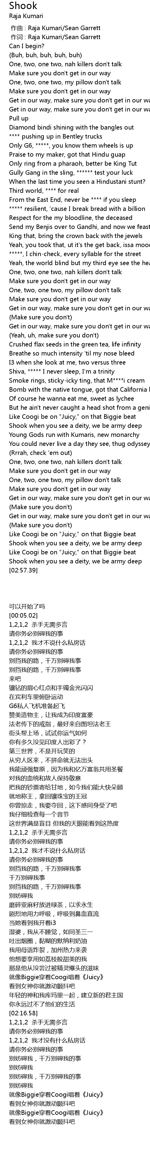 | [00:00.000] | zuò qǔ : Raja Kumari Sean Garrett |