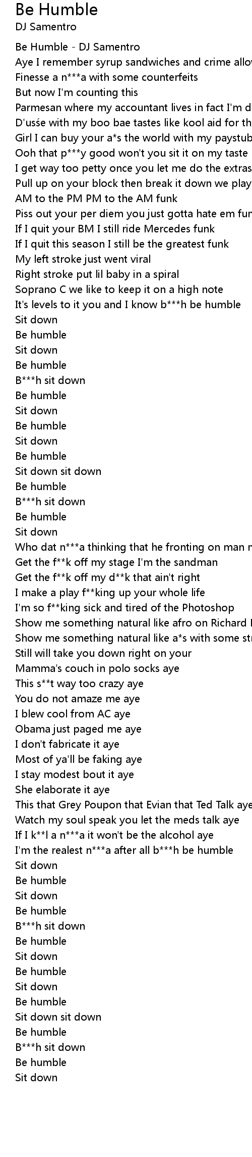 | [00:48.334] | It' s levels to it you and I know b h be humble |
