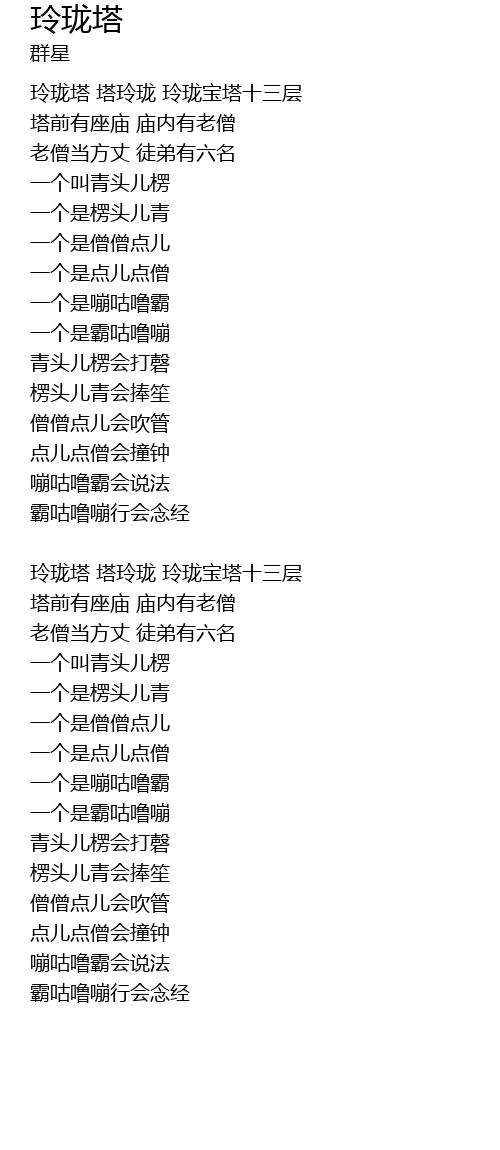 | líng lóng tǎ tǎ líng lóng líng lóng bǎo tǎ shí sān céng | |
