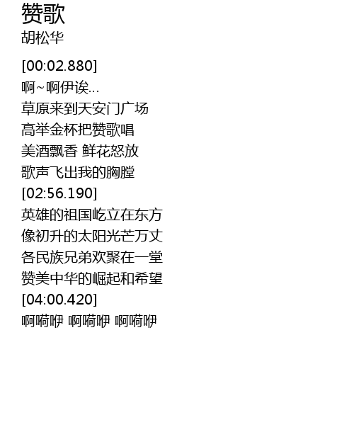 | [03:51.920] | 赞美中华的崛起和希望 |