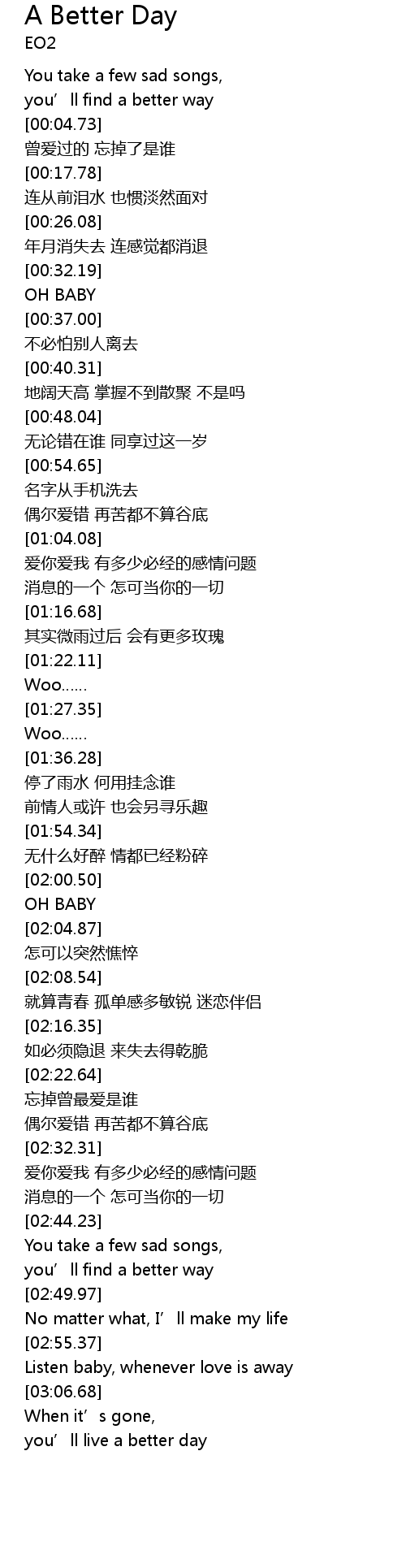 | [02:03.99] | OH BABY |