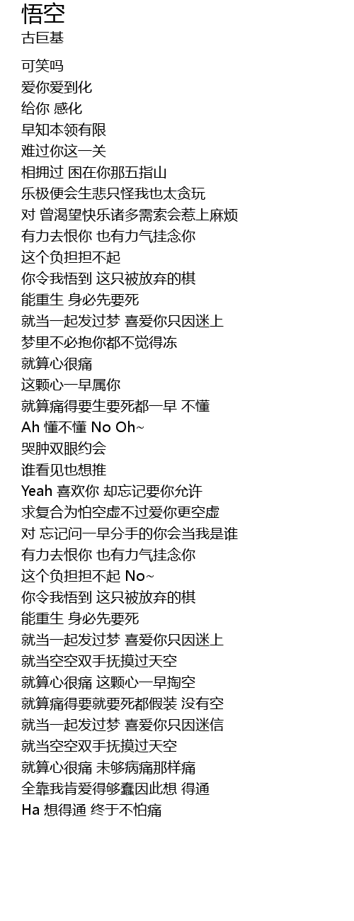 | [02:20.04] | qiu fu he wei pa kong xu bu guo ai ni geng kong xu |
