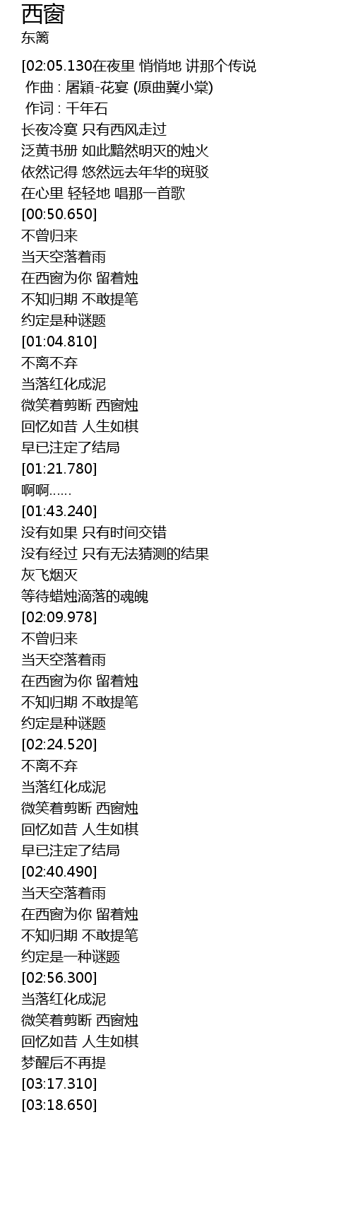 | [02:45.940] | 在西窗为你 留着烛 |