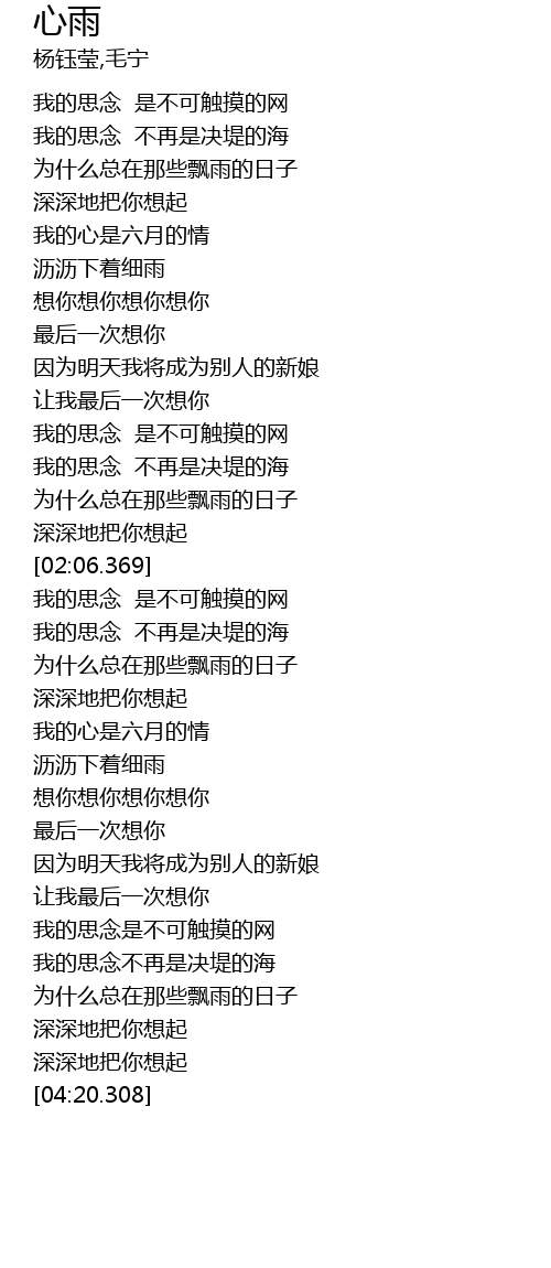 | [02:29.349] | 我的思念 是不可触摸的网 |