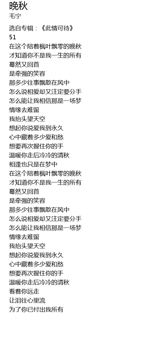 | [02:29.99] | 在这个陪着枫叶飘零的晚秋 |