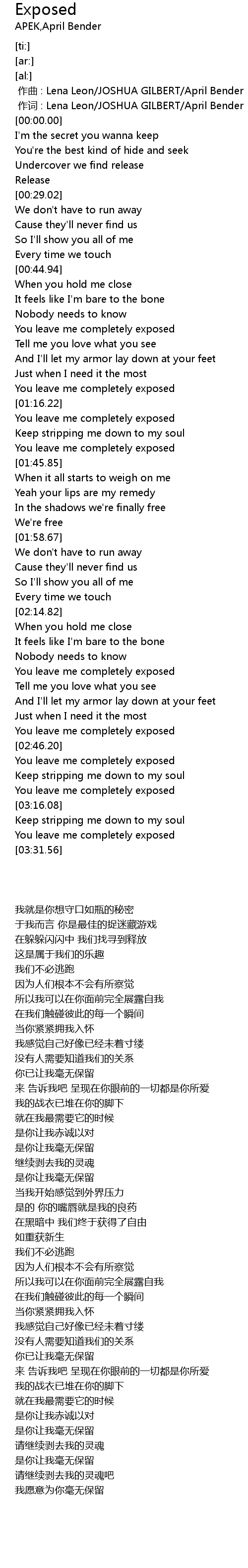 | [03:27.28] | You leave me completely exposed |