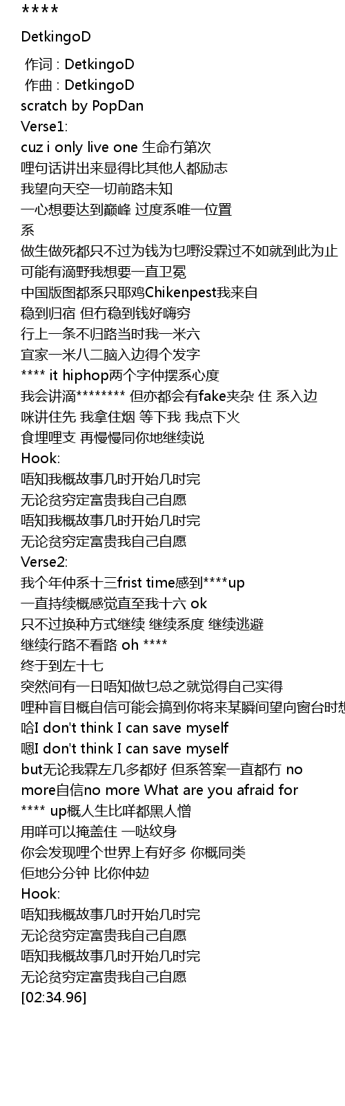 | [00:01.000] | 作词 : DetkingoD |