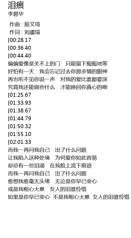 | [03:32.32][02:01.33] | 或是我粗心大意 女人的泪谁怜惜 |