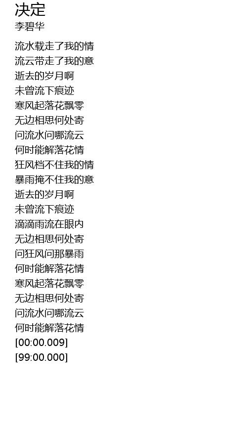 | [00:29.56] | liú yún dài zǒu le wǒ de yì |